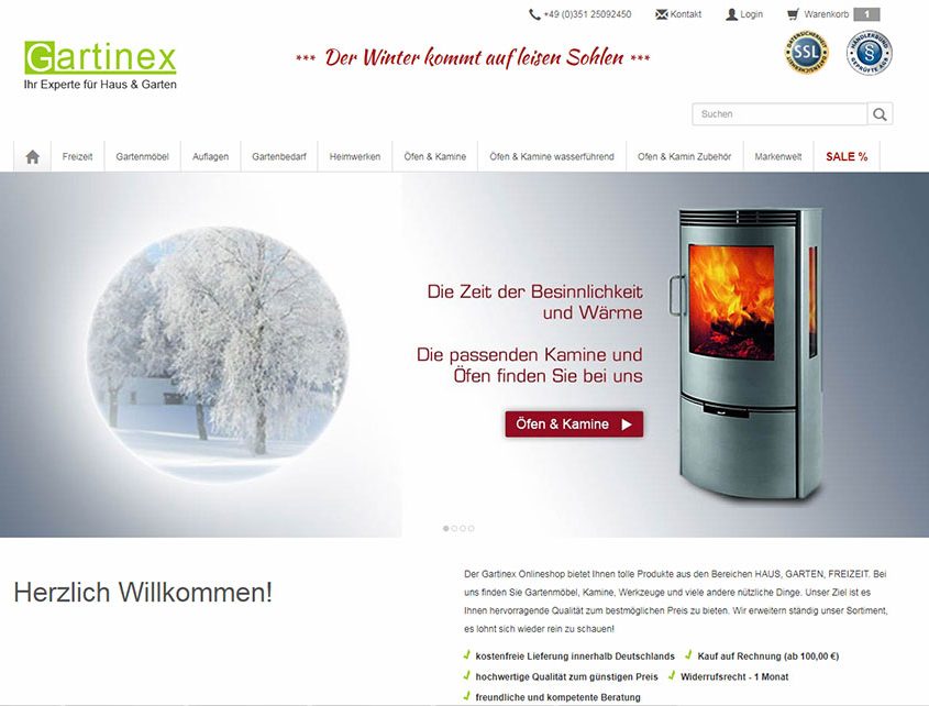 Die Gartinex GmbH betreibt neben www.gartinex.de auch noch den Webshop www.kaminofen-xxl.de.